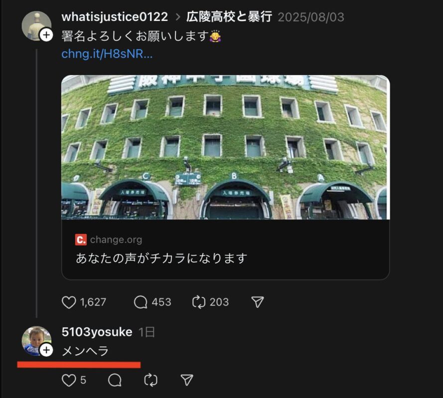 - 炎上の経緯:広陵高校野球部の一件で、被害者家族に対し「メンヘラ」などとSNSでコメントしたことが原因で炎上。その後、友人の投稿で反省していないと受け取られる行動があり、さらに炎上が拡大した。