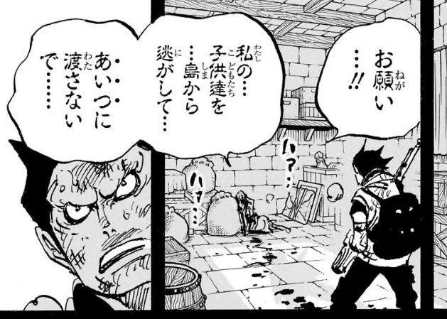 そして、自分の目の前に現れた海軍の制服を着たドラゴンに対し、シャンクスの母親は、「私の子供達を島から逃して」と懇願したのです。