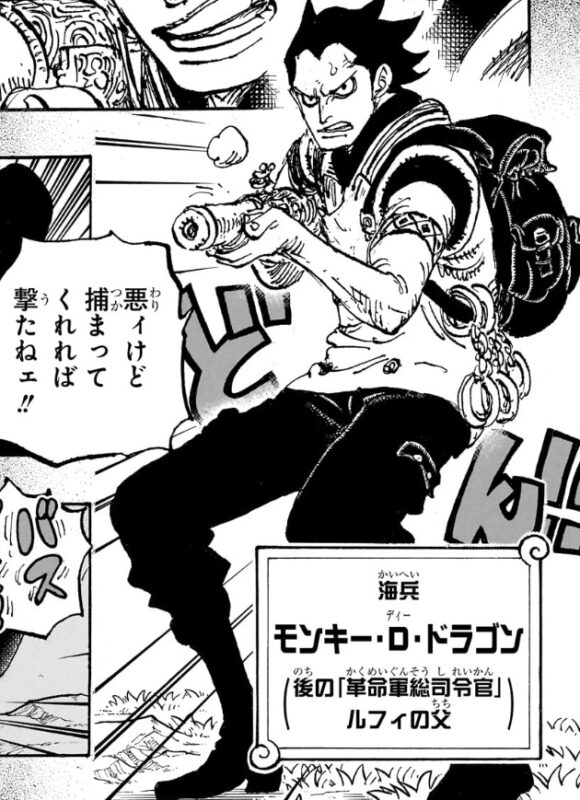 一方、このゴッドバレーの地に、若き日の海軍兵士だったモンキー・D・ドラゴンも、訓練だと聞かされ上陸していました。